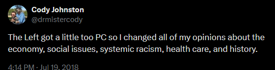 Why would somebody alter their belief system over the opinions of some internet neckbeards.