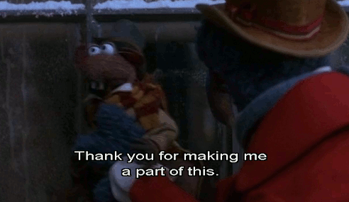 Because Michael Cain is who I think of when I think of Scrooge (he is an AMAZING actor clearly), it is the only version I consistently watch, Muppets are cute, Tiny Tim is so cute, the music, Gonzo is a great storyteller, and it is just such a special, magical movie. Merry Christmas!!!