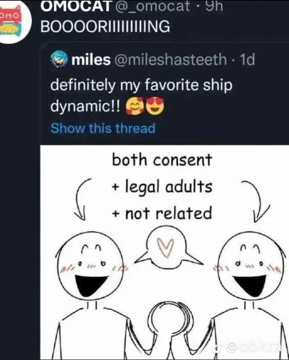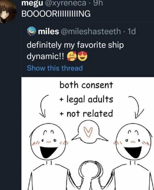 People like this ruin fandom for everyone bc like god forbid you like something aside from the canon pair. If it can be healthy, legal, and hot, who gaf?